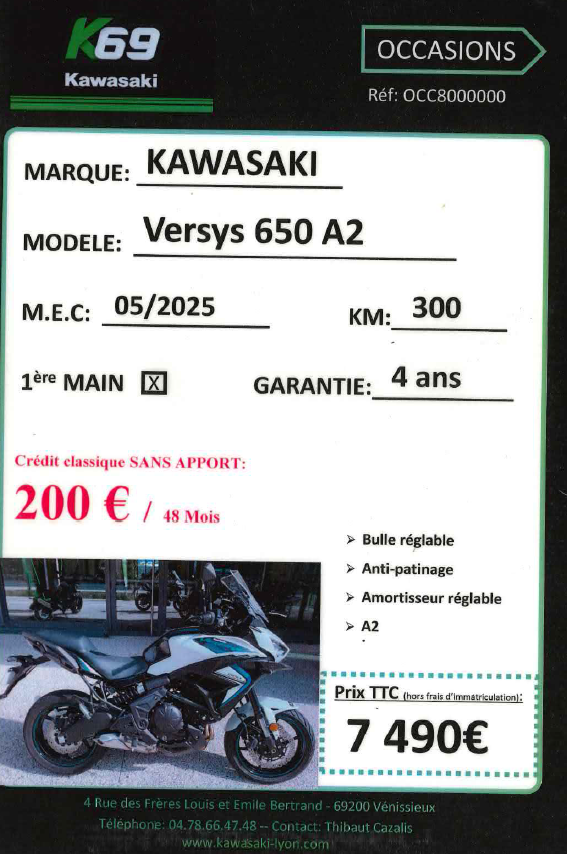 Services concession : Assurance sur place, Démarches administratives sur place, Essai sur rendez-vous, Extension de garantie possible, Financement & Assurance possibles , Gravage possible