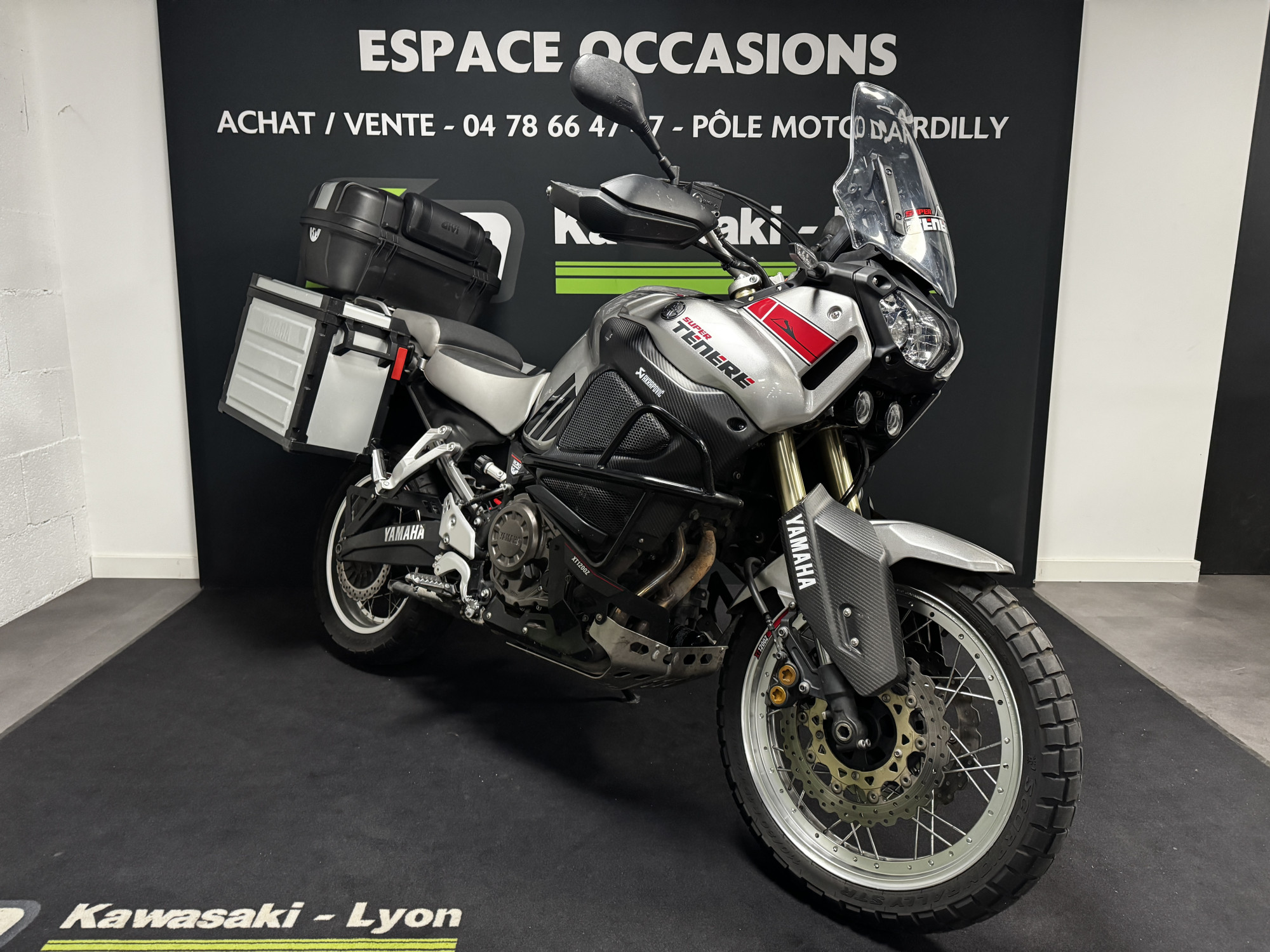 Equipements optionnels inclus : Bulle réglable, Dosseret top case, Feux additionnels, Protection réservoir, Silencieux Akrapovic, Suspension réglable